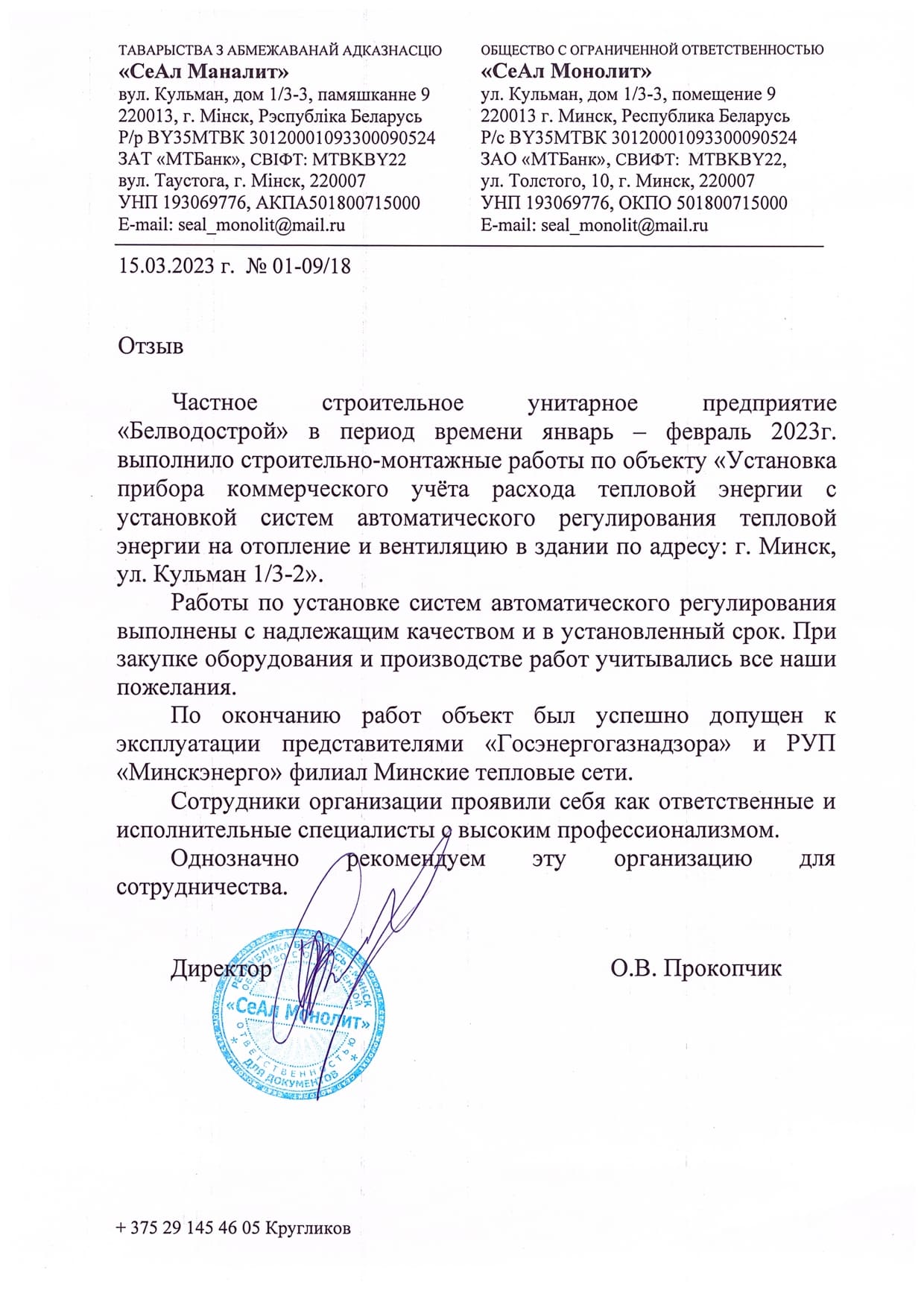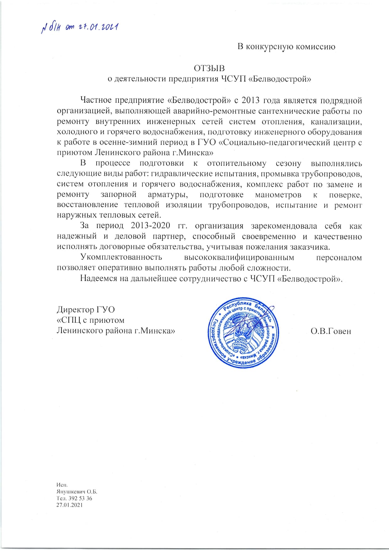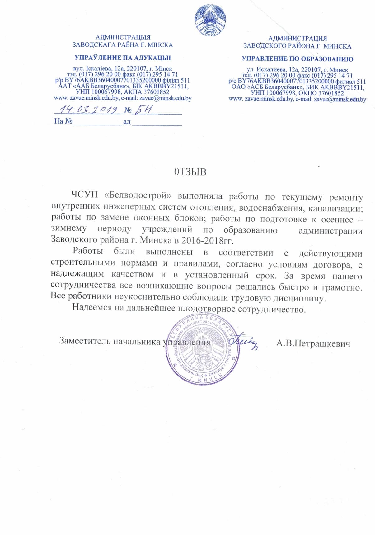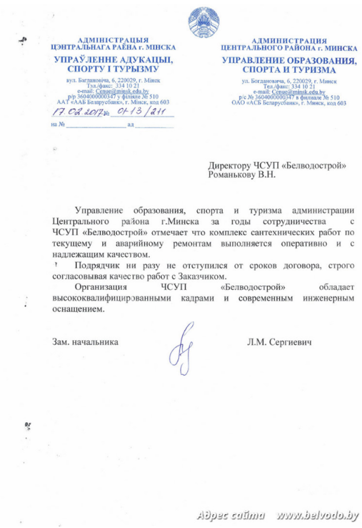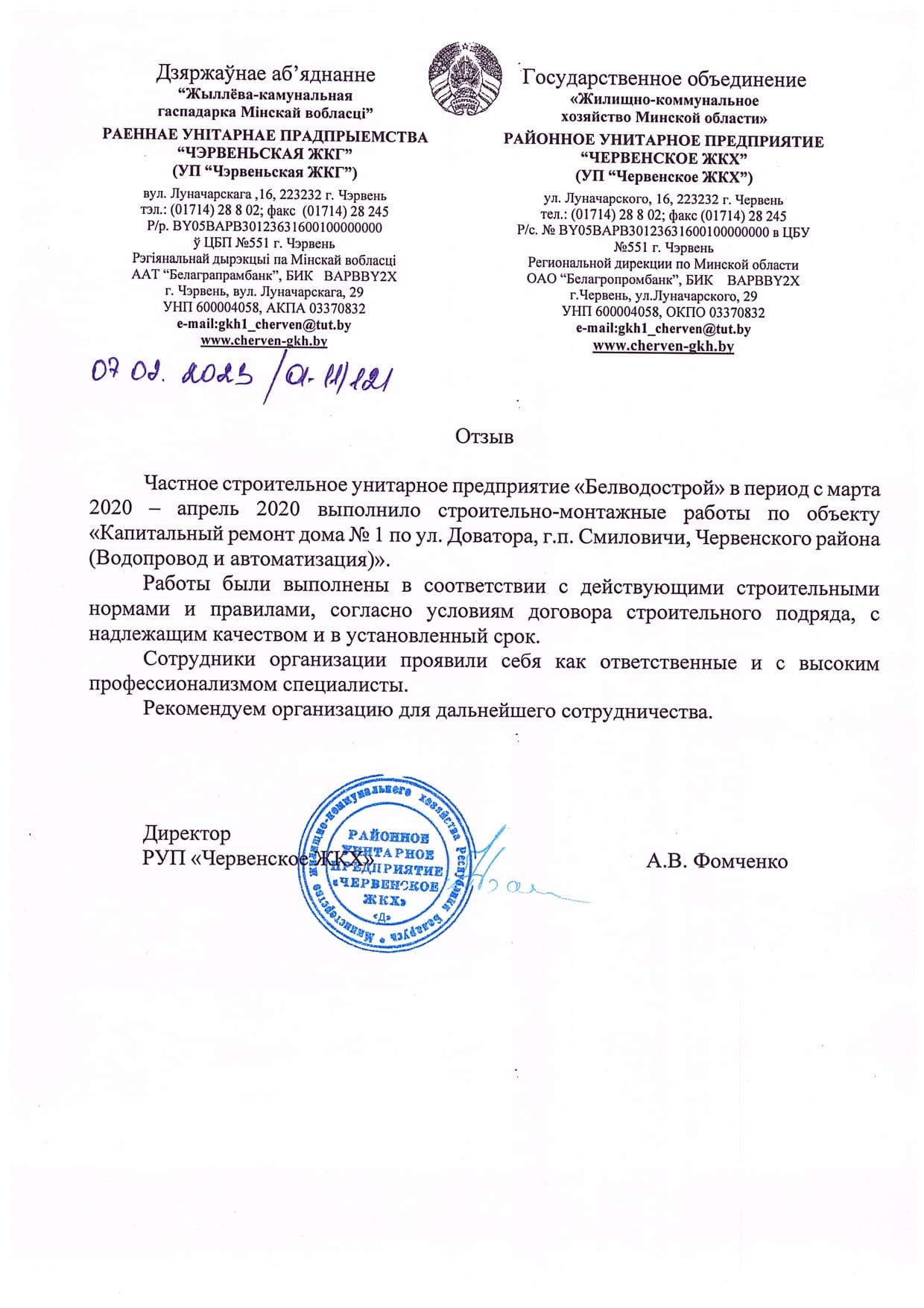 Мы ценим мнение наших клиентов и стремимся к их полному удовлетворению, предоставляя качественные услуги и индивидуальный подход к каждому проекту. Вот некоторые отзывы о работе компании Белводострой от наших клиентов: