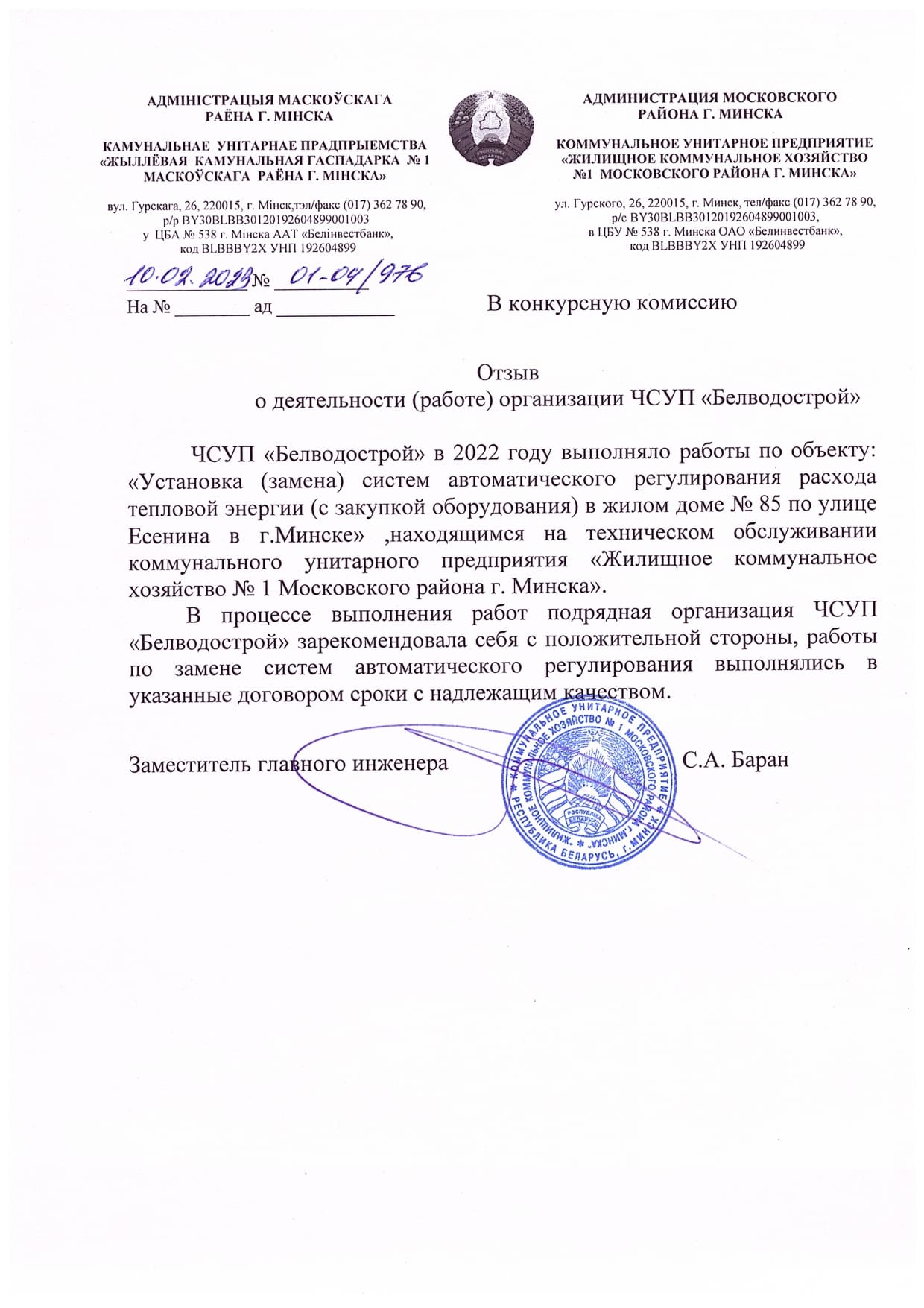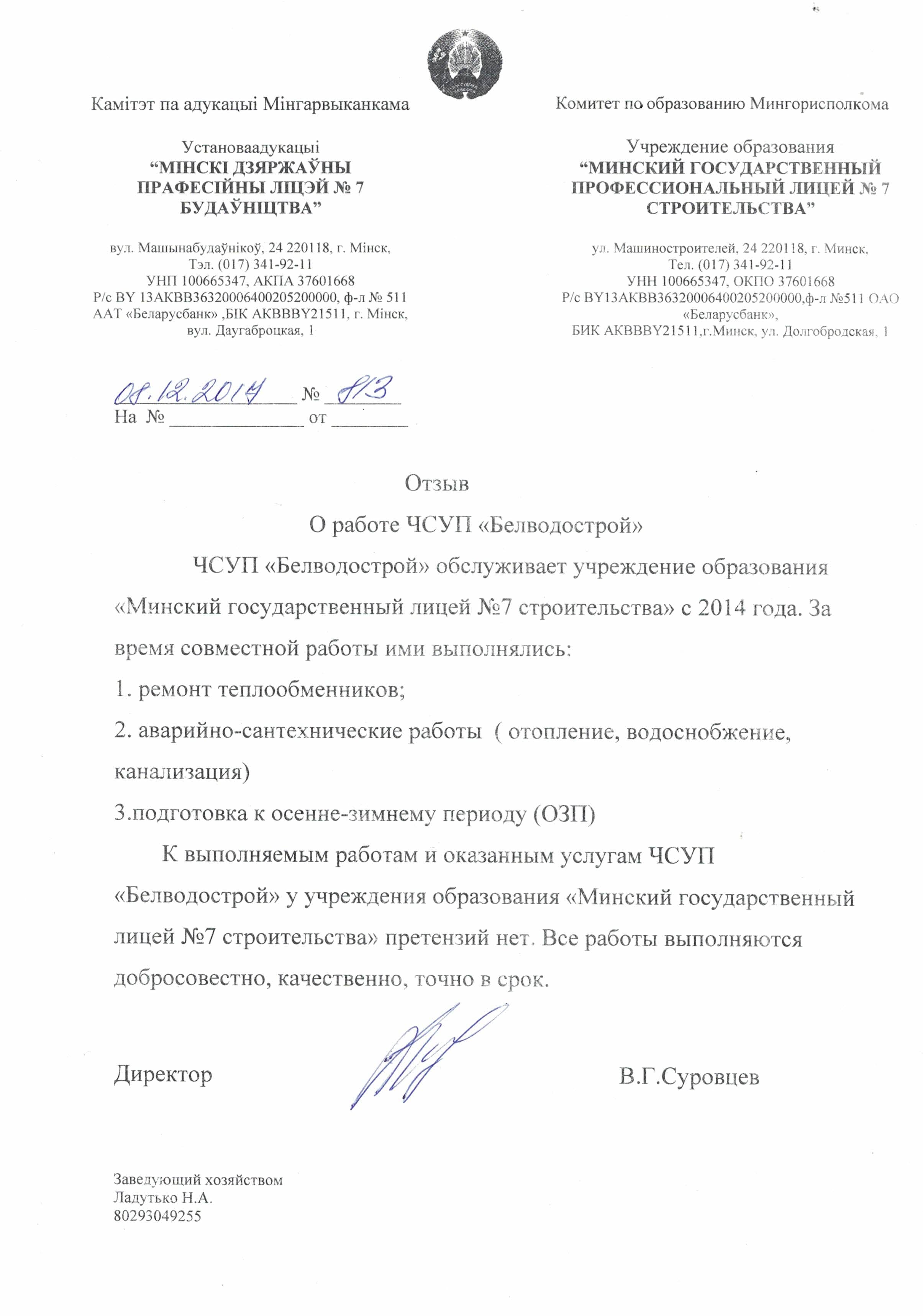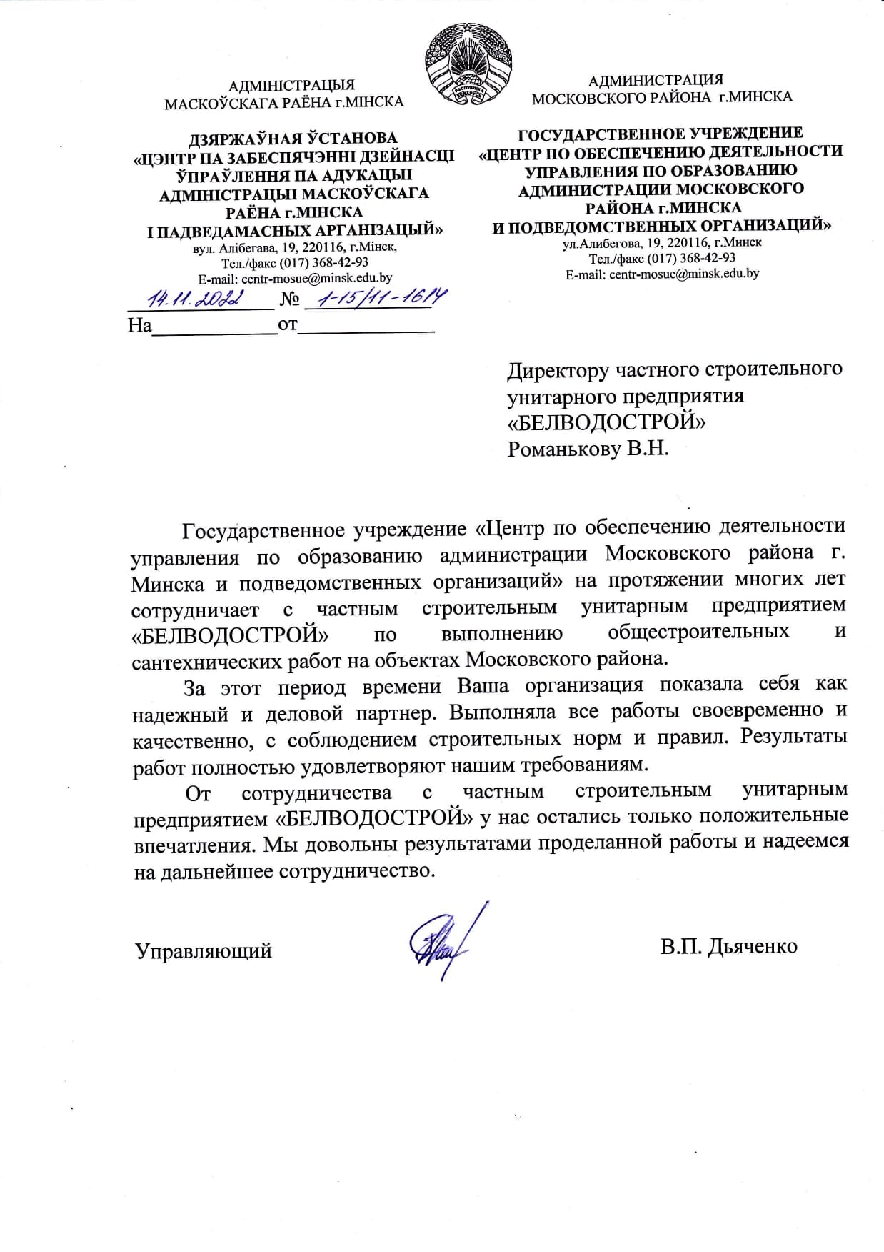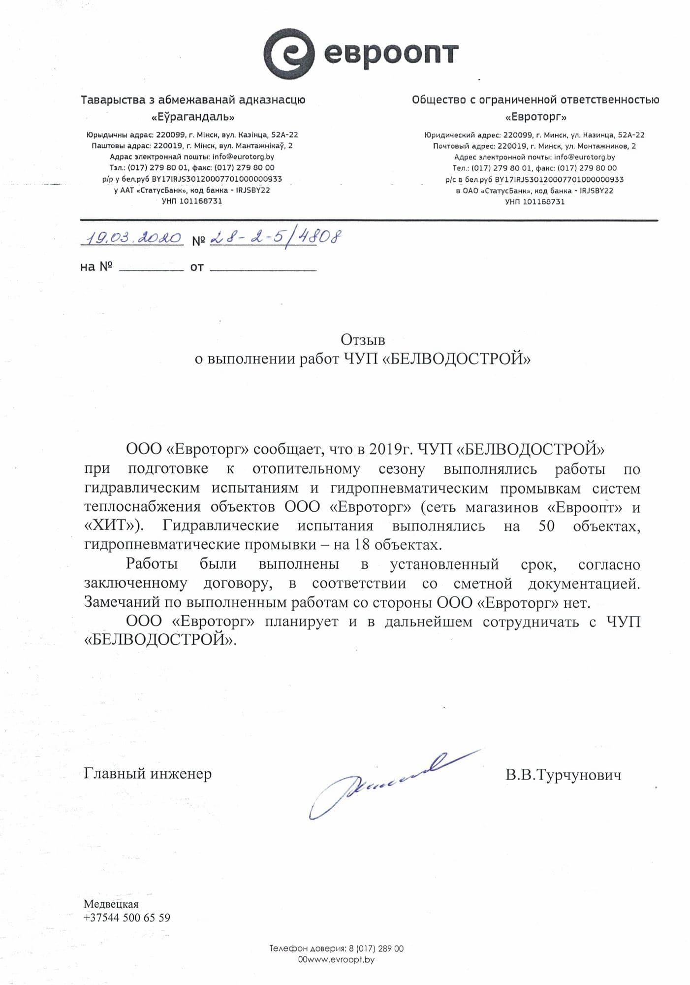 Мы ценим мнение наших клиентов и стремимся к их полному удовлетворению, предоставляя качественные услуги и индивидуальный подход к каждому проекту. Вот некоторые отзывы о работе компании Белводострой от наших клиентов: