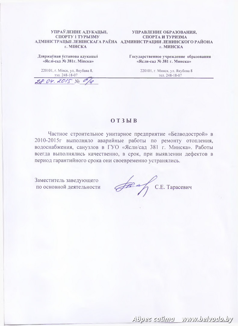 info@belvodo.by - по вопросам оформления договоров и заявок